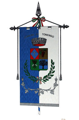 GONFALONE: drappo partito di azzurro. e di bianco riccamente ornato di ricami d'argento e caricato dello stemma sopra descitto con la iscrizione centrata in argento, recante la denominazione del Comune; Le parti di metallo ed i cordoni saranno argentati. L'asta verticale sarà ricoperta, di velluto dei colori del drappo, alternati, con bullette argentate poste a spirale. Nella freccia sarà rappresentato lo stemma del Comune e sul gambo inciso il nome.